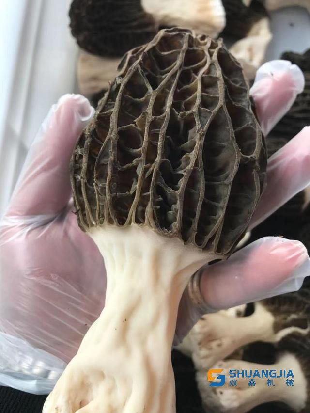 上海崇明設(shè)施化連棟大棚的菌壟間產(chǎn)出一批羊肚菌,其中個頭最大的近30厘米長,肉厚單株最重可達(dá)300克。隨手采摘一株,都有成年男性手掌般大小。這15畝連棟大棚,是上海臺霖灃公司于2023年租賃的,經(jīng)過設(shè)施化改造,當(dāng)年12月播種。如今,羊肚菌喜獲豐收。