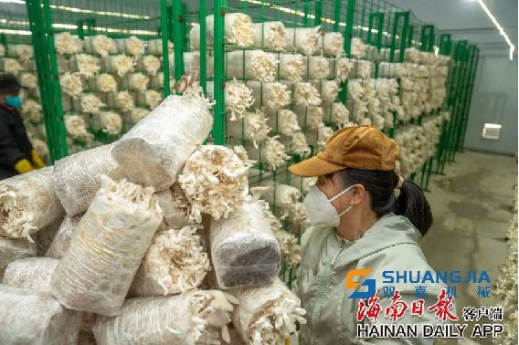 位于海南萬(wàn)寧市禮紀(jì)鎮(zhèn)食用菌種植基地,采用現(xiàn)代化、科技化的方式讓秀珍菇住上了智能“宅家”生活。智能出菇房配備了控溫、控濕等系統(tǒng),讓秀珍菇“安枕無(wú)憂”。在智能環(huán)境操控下,維持在適宜的溫度、濕度、二氧化碳濃度和光照控制,讓秀珍菇安心成長(zhǎng)。