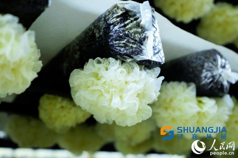 孫淑靜介紹,從現(xiàn)場測產(chǎn)情況來看,新菌株的子實體呈淡黃色、朵形圓整緊致、耳片厚實內(nèi)卷,平均產(chǎn)量相較目前主栽品種高出10%,總酚、黃酮含量分別提高約55%、60%,表現(xiàn)出豐產(chǎn)性好、活性成分含量高的特點,十分適合用作銀耳深加工產(chǎn)品原料。